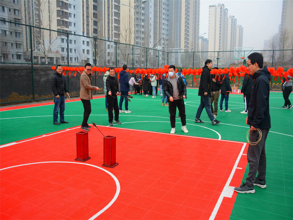 ? 項目部籃球場三排燈籠高掛,200個燈謎卡與吊穗隨風飄動,黑色箭羽在古紅色的投壺中“張望”,還有那“蠢蠢欲動”竹圈,似乎也在等待被人拾起的那一刻。在工作人員介紹完規(guī)則之后,大家爭先恐后地涌入活動場地,正式開始了今天的趣味之旅。