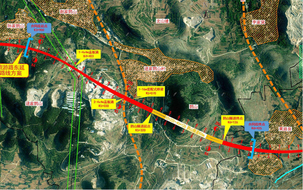? 作為旅游路東延項目的重要組織部分,濟(jì)南至濰坊高速公路濟(jì)南連接線(旅游路東延)工程SG-3標(biāo)段,西起孫家鵲山村東南側(cè),東至黃路泉村西側(cè),全長2.525公里。工程主要施工內(nèi)容包括隧道工程、橋涵工程、防護(hù)工程及路基路面工程。