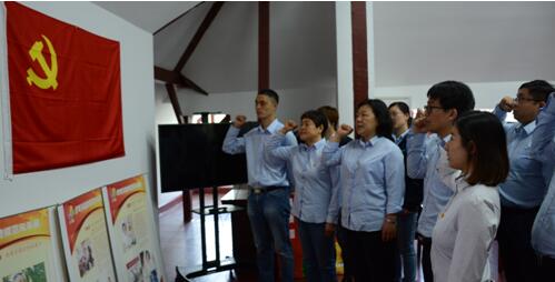 在整個(gè)參觀過程中,黨員們看得很認(rèn)真,聽得很仔細(xì)。最后我們來到紀(jì)念館三樓黨員宣誓處,面對鮮紅的黨旗,全體黨員莊嚴(yán)地舉起右手,莊嚴(yán)宣誓:“我志愿加入中國共產(chǎn)黨,擁護(hù)黨的綱領(lǐng),遵守黨的章程,履行黨員義務(wù),執(zhí)行黨的決定,嚴(yán)守黨的紀(jì)律,保守黨的秘密,對黨忠誠,積極工作,為共產(chǎn)主義奮斗終身,隨時(shí)準(zhǔn)備為黨和人民犧牲一切,永不叛黨?!辩H鏘的語調(diào),響亮的聲音,久久回蕩。