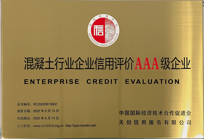 混凝土行業(yè)信用評價(jià)AAA級企業(yè)